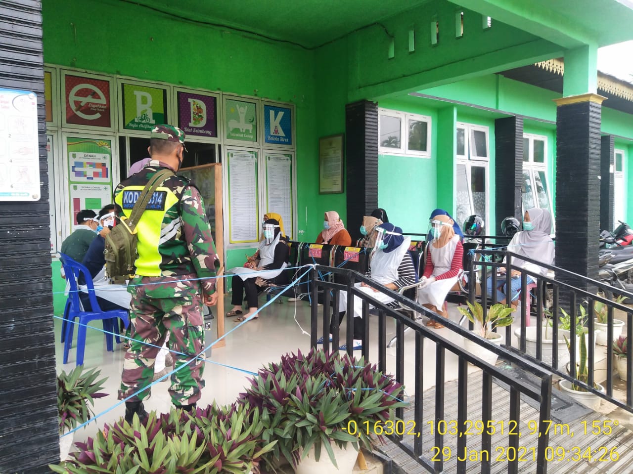 Serka Nawawi Babinsa Koramil 05/Gas Kodim 0314/Inhil Mendampingi Penyuntikan Vaksin Sinovac di Sei iliran