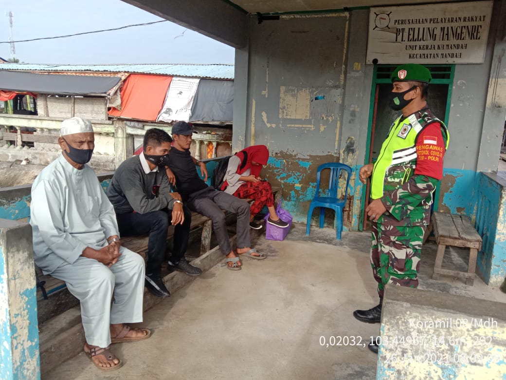 SERIBUPARITNEWS.COM, MANDAH - Babinsa Koramil 08/Mandah Kodim 0314/Inhil Koptu Adlis Melaksanakan Penegakan Disiplin Protokol Kesehatan Covid -19kepada masyarakat atau warga penumpang Bod turun naik yang berkumpul di Pelabuhan Bod Pasar Mandah Kelurahan Khairiah Mandah Kecamatan Mandah Kab. Inhil Selasa (26/01/2021)