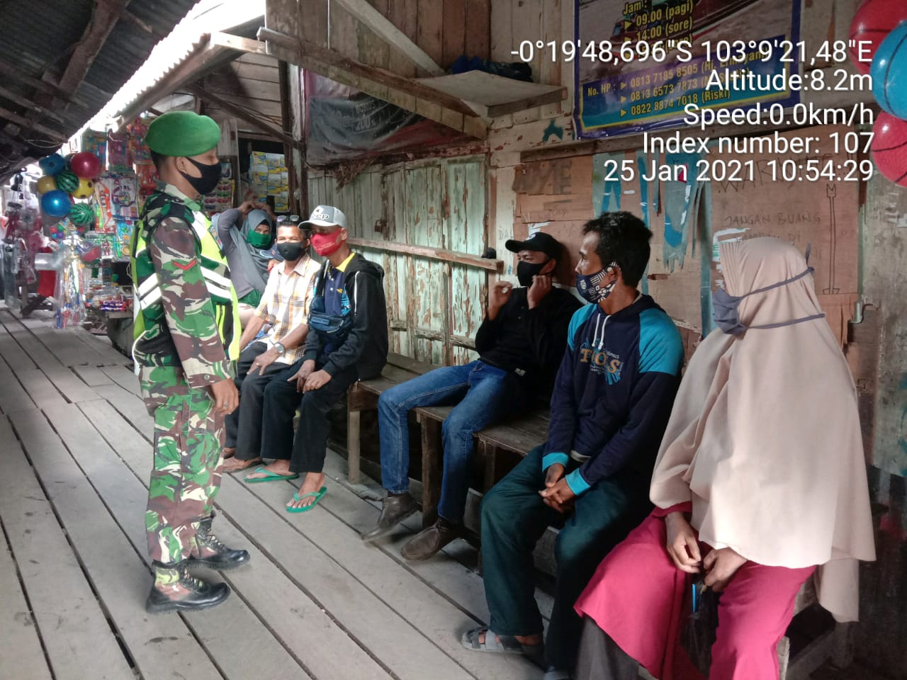 SERIBUPARITNEWS.COM, GAUNG ANAK SERKA - Kopda Umar Nasution Babinsa Koramil 05/Gas Kodim 0314/Inhi melaksanakan Penegakan Disiplin Protokoler Kesehatan New Normal Penanganan Covid 19 Terpadu* di pasar Sungai Empat Kecamatan Gaung Anak Serka Senin (25/01/2021)