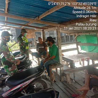 SERIBUPARITNEWS.COM,PULAU BURUNG - Babinsa Koramil 11/Pulau Burung di Pimpin oleh Serda Arif Darmawan Melaksanakan Gakplin Pangkalan Ojek Seputaran Pelabuhan 00 Desa Pulau Burung Kecamatan  Pulau Burung Kab Inhil Senin (11/01/2021)