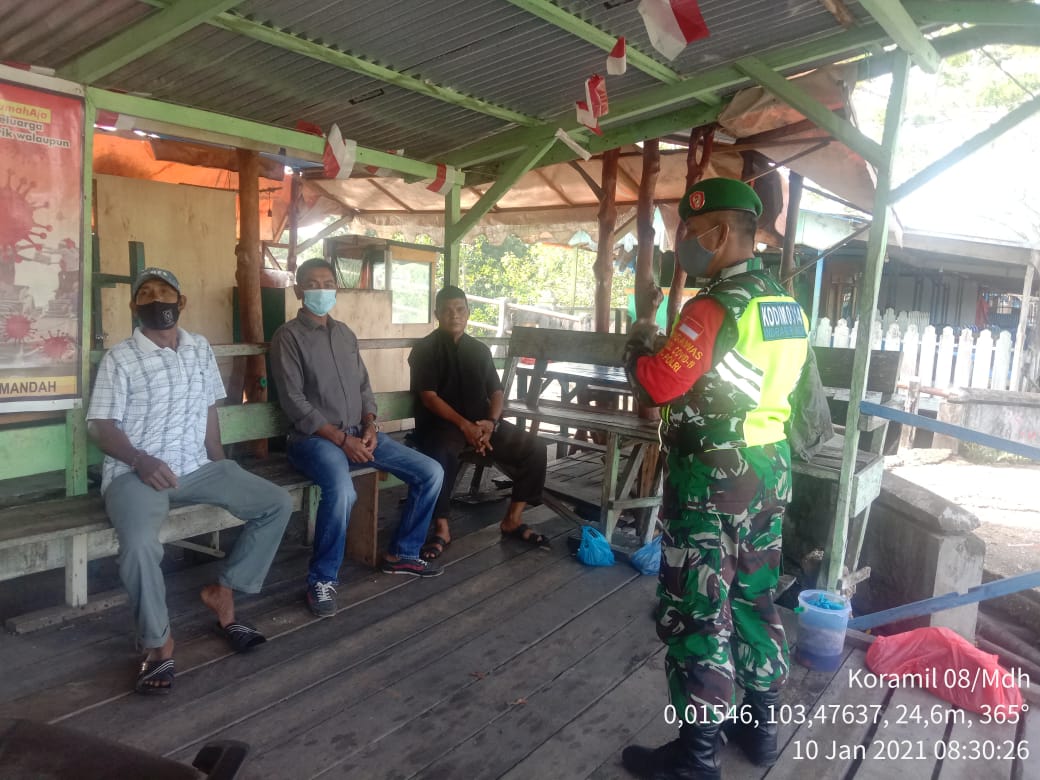 SERIBUPARITNEWS.COM,MANDAH - Babinsa Koramil 08/Mandah Kodim 0314/Inhil  Koptu Adlis Melaksanakan Gakplin Protokol Kesehatan Covid -19 Tukang Ojek  dan penumpang di Pangkalan Ojek Kelurahan Khairiah Mandah Kecamatan Mandah Kab. Inhil Minggu (10/01/2021)