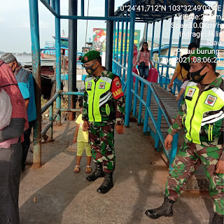 SERIBUPARITNEWS.COM, PULAU BURUNG - Di Awal Tahun 2021 ini Personil Koramil 11/Pulau Burung Kodim 0314/Inhil Mulai Melakukan Penegakkan Disiplin Protokol Kesehatan Covid-19 di Pelabuhan 00 Kecamatan Pulau Burung Kabupaten Indragiri Hilir Jumat (01/01/2021)