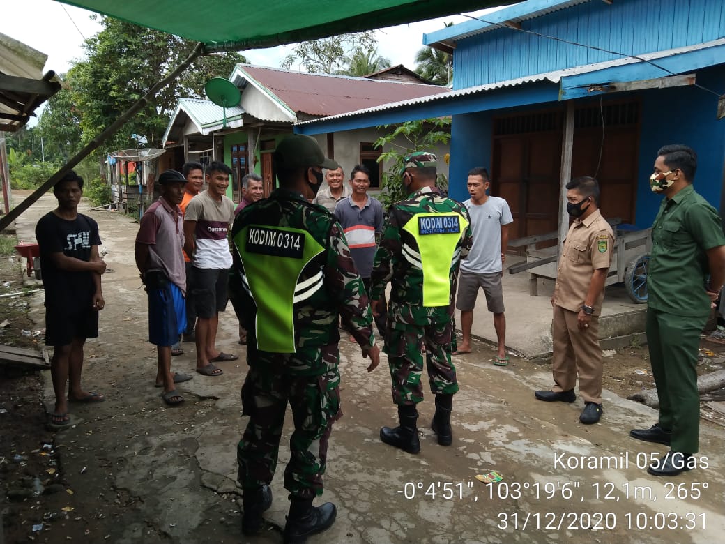 SERIBUPARITNEWS.COM,GAUNG - Serka Tota Simbolon dan Serda Jonlis panggabean Babinsa Koramil 05/Gas Kodim 0314/Inhil Penegakan Disiplin Protokoler Kesehatan New Normal Penanganan Covid 19 Terpadu dan pembagian masker di Desa lahang Hulu Kecamatan Gaung Kab. Inhil Kamis (31/12/2020)