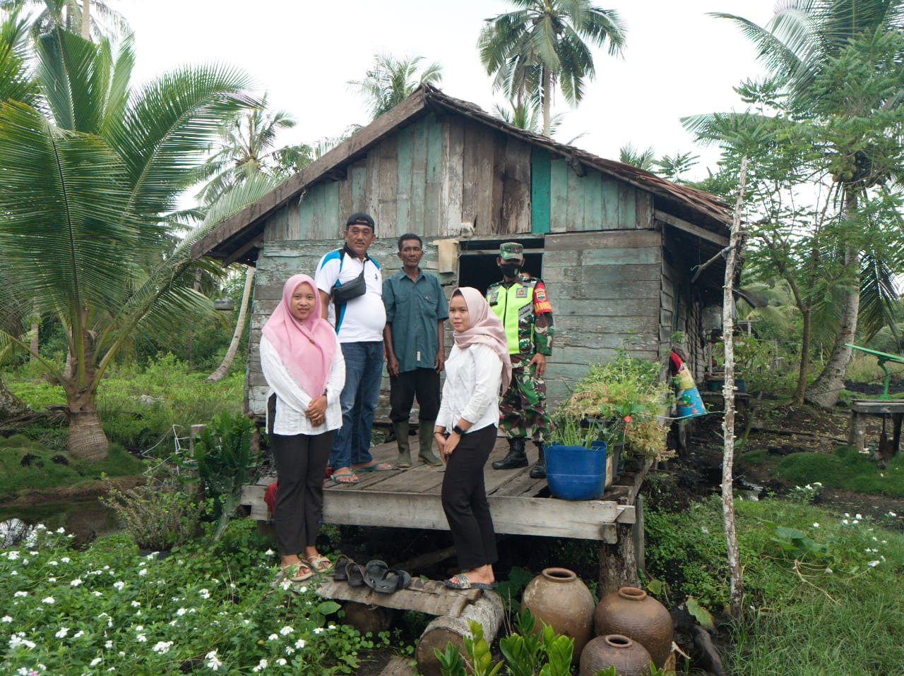 Bersama Kepala Desa Pulau Cawan Khairul Hanafiah, Tokoh Masyarakat dan adat Serka H.Situmorang meninjau langsung rumah warga yang tidak layak huni yang nantinya akan dilakukan pembedahan