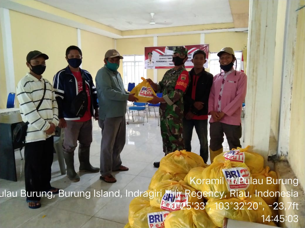 SERIBUPARITNEWS.COM, PULAU BURUNG - Serda Ratno Babinsa Koramil 11/Pulau Burung Kodim 0314/Inhil Besama Kepala Desa Bapak Usman Salurkan Bansos di Desa Pulau Burung Kecamatan Pulau Burung Kamis (31/12/2020)