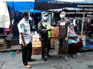 SERIBUPARITNEWS.COM, GAUNG ANAK SERKA - Serka Sasmito Babinsa Belantaraya Koramil 05/Gas Kodim 0314/Inhil Masih melaksanakan Penegakkan disiplin protokol kesehatan di beberapa titik di desa belantaraya kecamatan gaung Rabu (30/12/2020)