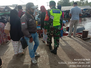 Babinsa bolak Raya Koptu Adlis  melaksanakan himbauan mematuhi protokol kesehatan di Pelabuhan desa Sped boat