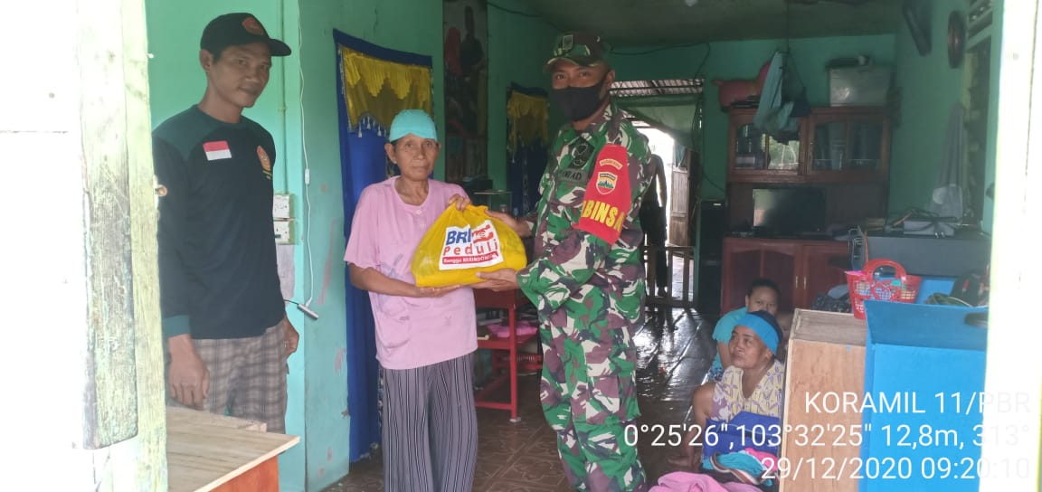 SERIBUPARITNEWS.COM, PULAU BURUNG -  Serda Arif Babinsa Koramil 11/Pulau Burung Kodim 0314/Inhil Melaksanakan  kegiatan Pemberian Bansos 25 paket dari Bapak  Idris Lena Anggota DPR RI Komisi 6 DAPIL 6 Kecamatan Pulau  Burung Kabupaten Indragiri Hilir Selasa (29/12/2020)