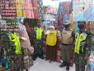SERIBUPARITNEWS.COM, TEMBILAHAN - Sertu Safriadi Koto Babinsa Koramil 01/Tembilahan Kodim 0314/Inhil  Gakplin Prokes Tim Patroli Mobile di Kecamatan Tembilahan Kabupaten Indragiri Hilir Minggu (27/12/2020)