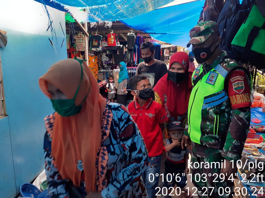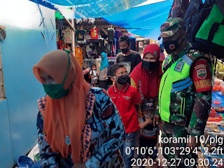 Koptu Dodimen menghimbau para pedagang dan pengunjung agar mematuhi protokol kesehatan dalam aktifitas ekonominya