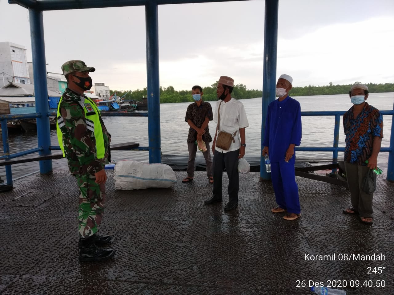SERIBUPARITNEWS.COM, MANDAH - Babinsa Koramil 08/Mandah Kodim 0314/Inhil Serda Erik A. Sibarani Melaksanakan   Prokes Covid -19 kepada masyarakat yang berkumpul di Pel. Sembuang Kelurahan  Khairiah Mandah Kecamatan Mandah Kab. Inhil Sabtu (26/12/2020)