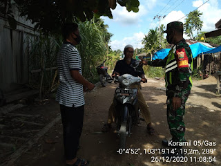 SERIBUPARITNEWS.COM, GAUNG - Serda Jodlis Panggabean Babinsa Lahang Hulu Koramil 05/Gas Kodim 0314/Inhil Berbagi Masker Gratis di Desa Lahang Hulu Kecamatan Gaung Kabupaten Indragiri Hilir Sabtu (26/12/2020)