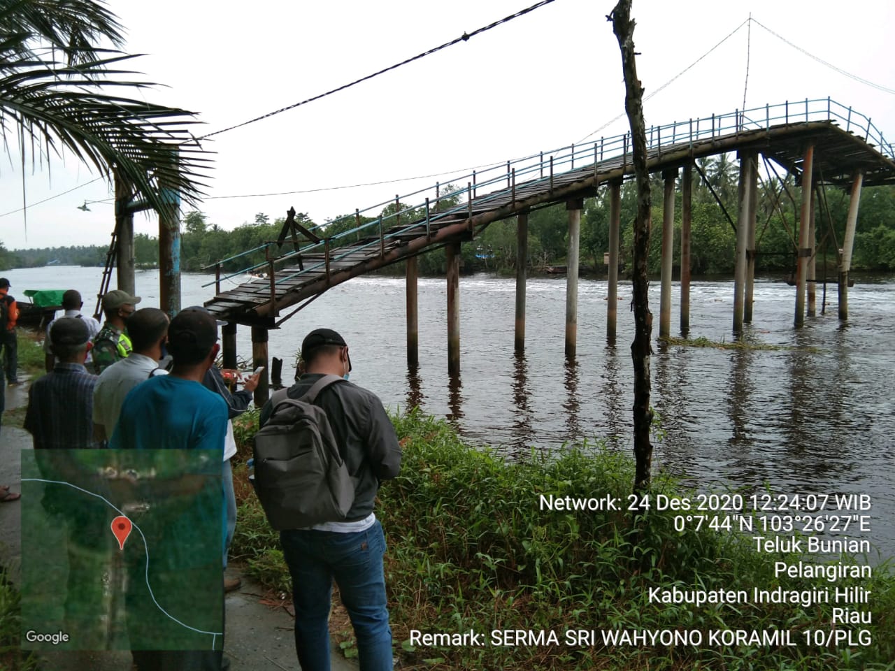 Dalam pengecekan dan Pengukuran Jembatan tersebut tim yang turun diantaranya Babinsa Koramil 10/Pelangiran Kodim 0314/Inhil Serma Sri Wahyono,