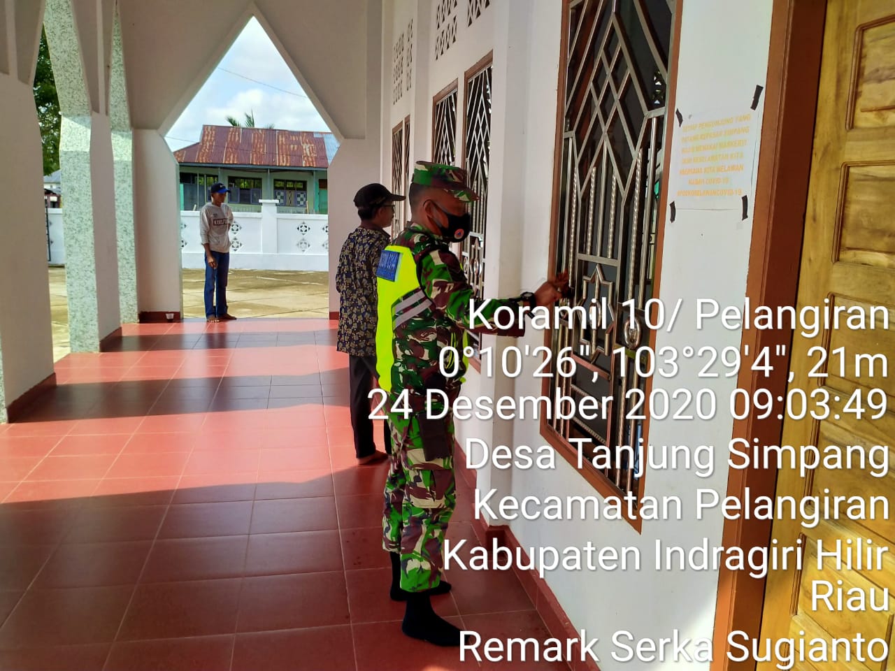 SERIBUPARITNEWS.COM, PELANGIRAN - Babinsa 10/Pelangiran Kodim 0314/Inhil Serka Sugianto melaksanakan Gotong Royong pembersihan Masjid Jami' Nurul Huda di Desa Tanjung Simpang Kecamatan Pelangiran Kabupaten Indragiri Hilir Kamis (24/12/2020)
