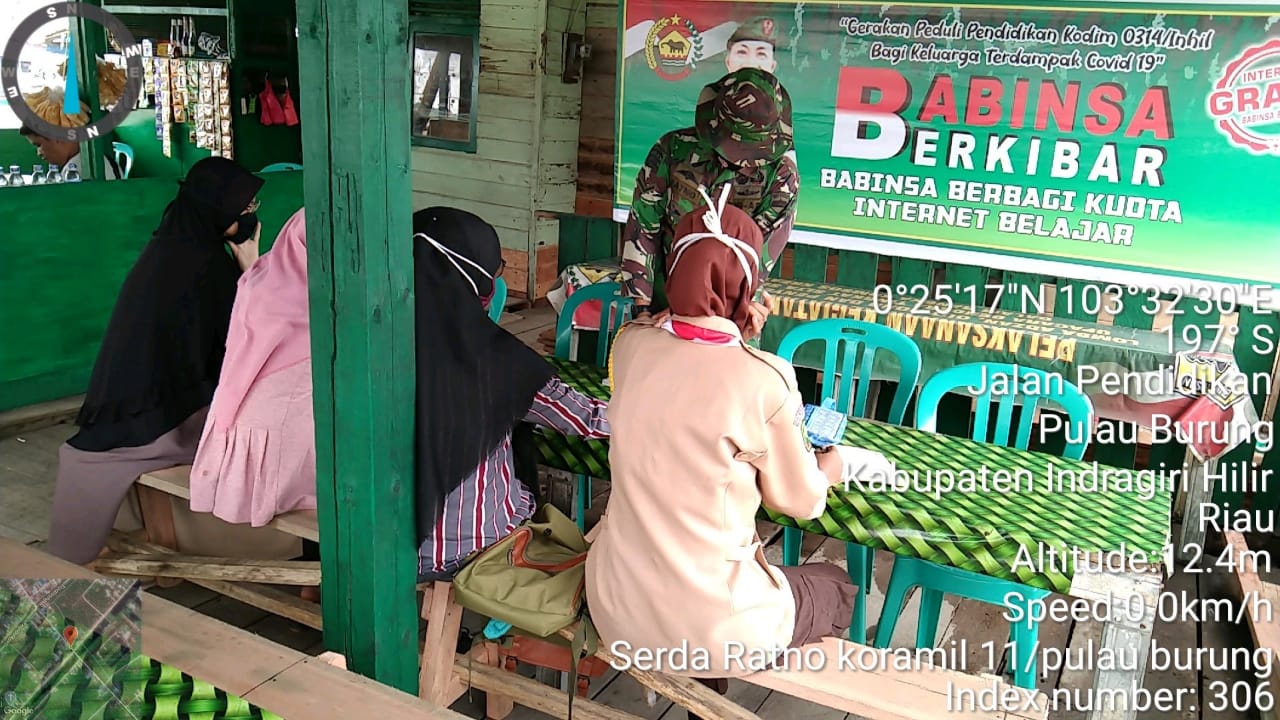 Serda Ratno Babinsa Koramil 11/Pulau Burung melaksanakan Pendampingan Daring On Line Babinsa Berkibar di Pos Babinsa Pulau Burung