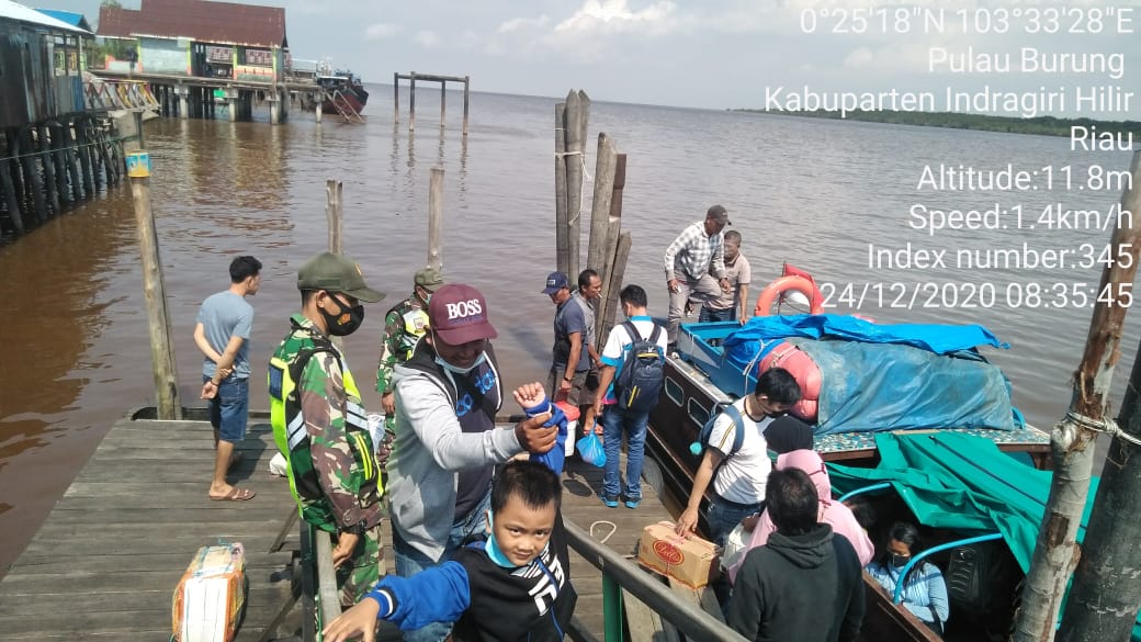 SERIBUPARITNEWS.COM, PULAUBURUNG - Serda Z.Pulungan Babinsa Koramil 11/Pulau Burung Kodim 0314/Inhil Melaksanakan Gakplin Protokes di Pelabuhan 00 Desa Pulau Burung Kecamatan Pulau Burung Kamis (24/12/2020)