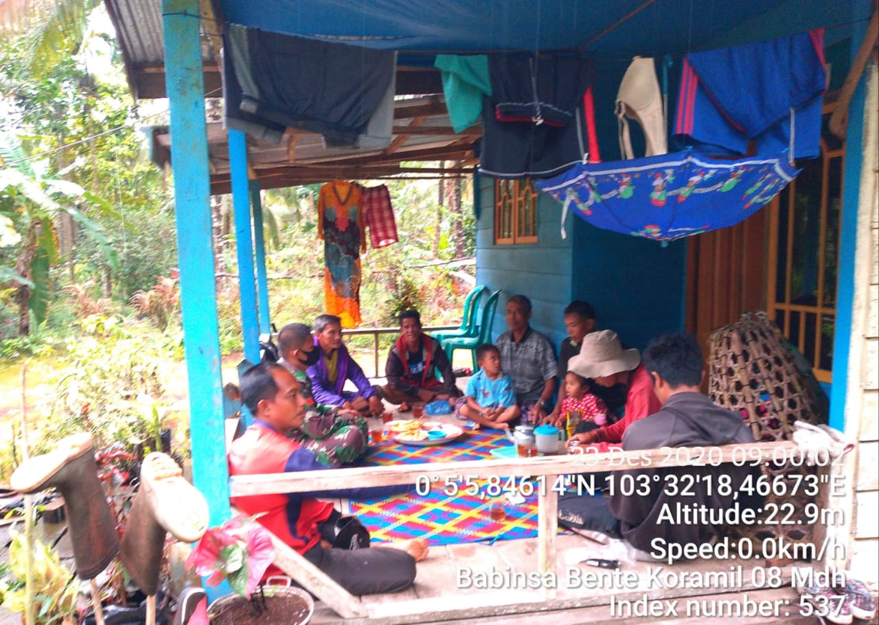 SERIBUPARITNEWS.COM, MANDAH -  Babinsa Koramil 08/Mandah Praka Hendri Kodim 0314/Inhil Melaksanakan Komsos bersama masyarakat di Desa Bente Kecamatan  Mandah Kab. Inhil Rabu (23/12/2020)