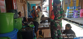 SERIBUPARITNEWS.COM, PELANGIRAN - Serda Dodi Eka Putra Babinsa Koramil 10/Pelangiran Kodim 0314/Inhil melaksanakan Himbauan pemakaian masker di Pasar minggu Kecamatan Pelangiran Kamis (17/12/2020)