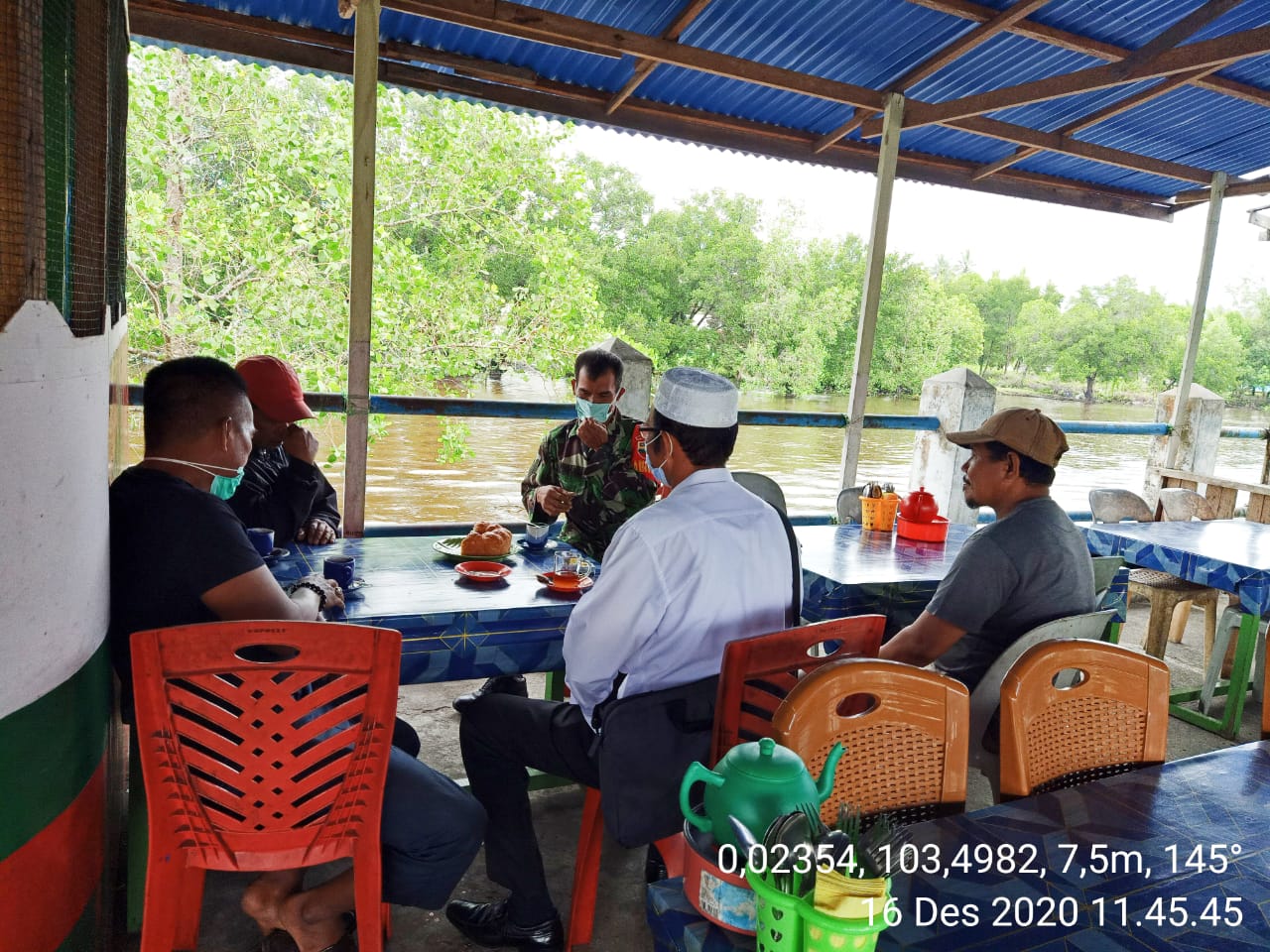 SERIBUPARITNEWS.COM, MANDAH - Babinsa Igal Serka H.Situmorang Melaksanan Komsos bersama tokoh masyarakat dan warga di warung kopi di Kelurahan Khairiah Mandah Kecamatan Mandah Kabupaten Indragiri Hilir Rabu (16/12/2020)