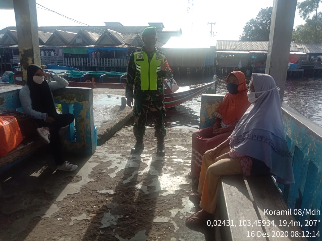 SERIBUPARITNEWS.COM, MANDAH - Babinsa Koramil 08/Mandah Kodim 0314/Inhil Koptu Adlis Melaksanakan Gakplin Prokes Covid -19 dengan masyarakat yang berada di  Pelabuhan  Boat Pasar Mandah Kecamatan Mandah Kabupaten  Inhil Rabu (16/12/2020)
