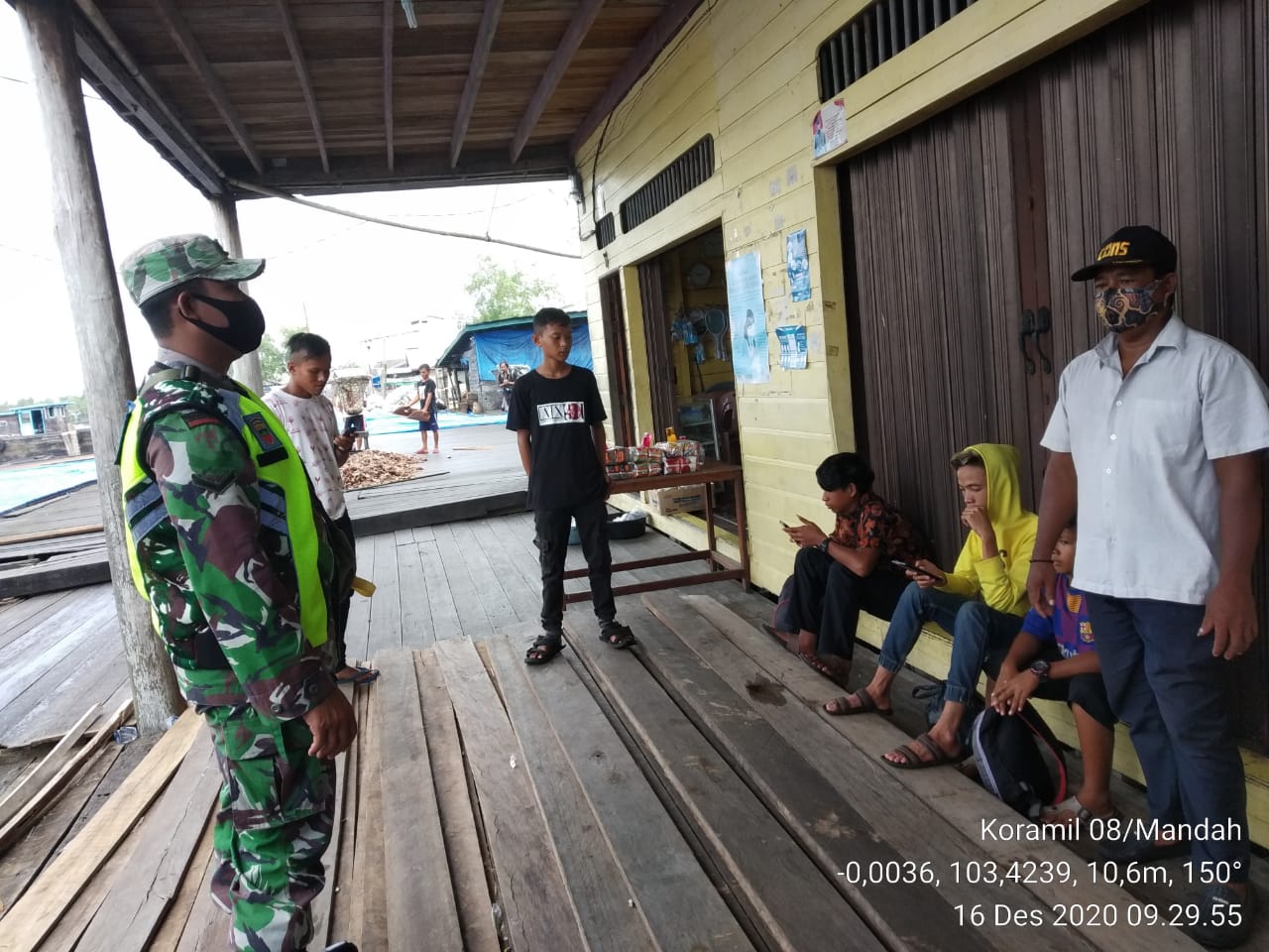 SERIBUPARITNEWS.COM, MANDAH - Babinsa Serda Erik A. Sibarani  Babinsa Bakau Aceh Koramil 08/Mandah Kodim 0314/Inhil Melaksananakan  Prokes Covid -19 kepada warga yg berkunjung ke pasar dan  warung kopi Sendawa Desa Bakau Aceh Kec. Mandah Kab. Inhil Rabu (16/12/2020)
