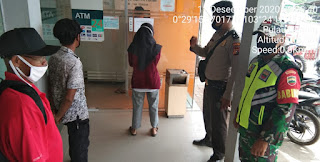 Sekaligus mengecek para nasabah tentang kepatuhan dalam memakai masker, terutama di ruang yang ber AC yang cepat menyebarkan virus bila ada yang terinfeksi