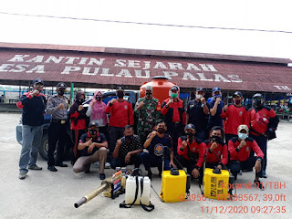 Penyemprotan desinfektan dilaksanakan di Pasar desa pulau Palas,Mesjid Al falah Pulau Palas, SD negri 02 desa pulau Palas dan