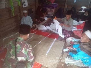 Kegiatan seperti ini selalu dilakukan kepada warga binaannya yang tertimpa musibah meninggal dunia, hal tersebut dilakukan bertujuan guna mendoakan almarhum dan memberikan dukungan moril pada keluarga yg ditinggalkan serta mempererat hubungan silahtuhrahmi antara TNI dan Rakat,.Ucap Babinsa