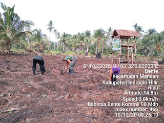 SERIBUPARITNEWS.COM, MANDAH - Babinsa Bente Koramil 08/Mandah Kodim 0314/Inhil Praka Hendri melaksanakan perawatan dan pemeliharaan tanaman Jagung seluas ± 1Ha bersama warga di Dusun Jarau Desa Bente Kecamatan Mandah Kab.Inhil Kamis (10/12/2020)