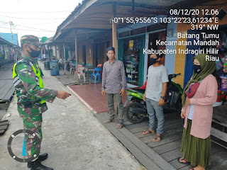 SERIBUPARITNEWS.COM, MANDAH - Babinsa Batang Tumu Koramil 08/Mandah Kodim 0314/Inhil Serda Tulus Lumban Gaol Melaksanan Gakplin Prokes Covid -19 dengan pedagang dan warga pengunjung di pasar Tokolan Desa Batang Tumu Kecamatan Mandah Kabupaten Inhil Selasa (08/12/2020)