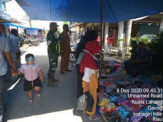 Serka Tota Simbolon Babinsa Kuala Lahang Koramil 05/Gas Kodim 0314/Inhil Memastikann penerapan Protokol Kesehatan telah berjalan sesuai Himbauan yang telah dilaksanakannya selama ini