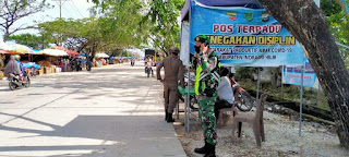 SERIBUPARITNEWS.COM, TEMBILAHAN - Sertu Masri Babinsa Koramil 01/Tembilahan Kodim 0314/Inhil tegakkan disiplin di Posko Terpadu simpang empat sungai beringin kelurahan Sei Beringin Kecamatan Tembilahan Kabupaten Indragiri Hilir Minggu (06/12/2020)