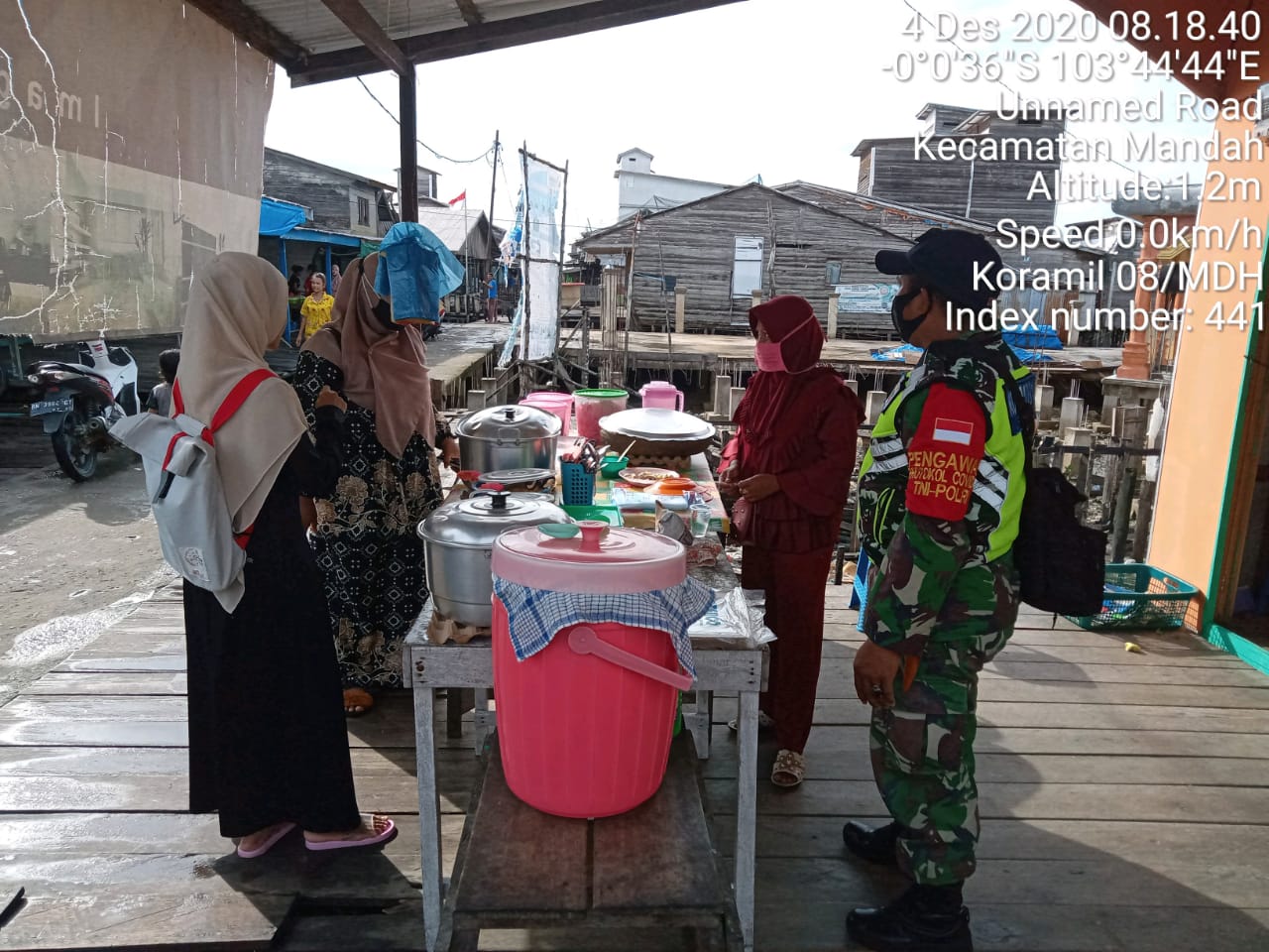 SERIBUPARITNEWS.COM, MANDAH -;Babinsa Koramil 08/Mandah Kodim 0314/Inhil Serda Haris Mony Melaksanakan Penegakan Disiplin Protokol Kesehatan Covid -19 kepada para warga pejalan kaki dan pengunjung yang datang ke pasar di Desa Bekawan Kecamatan Mandah Kabupaten Inhil Jumat (04/12/2020).