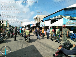 SERIBUPARITNEWS.COM, TEMBILAHANHULU - Sertu Zulfahri Babinsa Koramil 01/Tembilahan Kodim 0314/Inhil lakukan pengawasan terpadu di Pasar Kayu Jati Kamis (03/12/2020)