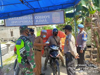 Penegakkan disiplin berupa pengecekan suhu tubuh kepada pengendara kendaraan bermotor dilaksanakan di pintu masuk ke Kelurahan Pelangiran dengan melibatkan tim kesehatan,Anggota Polsek dan pihak kecamatan