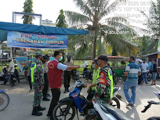 "Personil Koramil 07/Reteh yang bergabung di team gugus tugas kecamatan Reteh selalu berkerjasama dengan Anggota Polsek Reteh Sat Pol PP Team Kesehatan dan Relawan tiada henti-hentinya memberikan imbauan kepada pedagang dan pembeli untuk selalu disiplin dalam mematuhi Protokol Kesehatan," ucap Babinsa