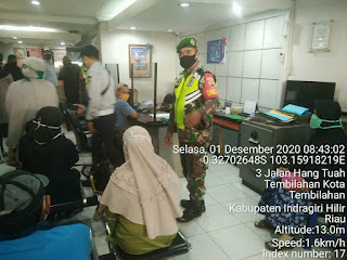 SERIBUPARITNEWS.COM, TEMBILAHAN -  Sertu Syafriadi Koto Babinsa Koramil 01/Tembilahan Kodim 0314/Inhil telah Melaksanakan Apel Persiapan Pelaksanaan tugas Tim Penegakkan Disiplin  Protokol Kesehatan Penyebaran Covid -19 Kab.Inh Selasa (01/12/2020)
