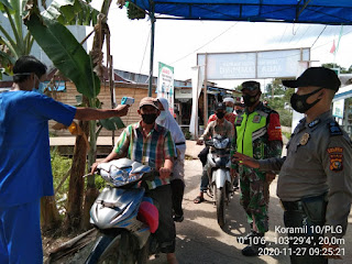 Personil Koramil 10/Pelangiran Kodim 0314/Inhil Serma Sri Wahyono dan Anggota Polsek Pelangiran Bersinergi untuk memberantas masyarakat yang Tidak mematuhi Protokes dalam kegiatannya hari ini