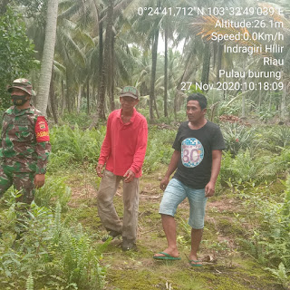 SERIBUPARITNEWS.COM, PULAUBURUNG - Praka Dedi Hariyawan Babinsa Koramil 11/Pulau Burung Kodim 0314/Inhil Bersama personil lainnya melaksanakan kegiatan Patroli Karlahut di Desa Binangun jaya Kecamatan Pulau Burung kabupaten Indragiri Hilir jum'at (27/11/2020)