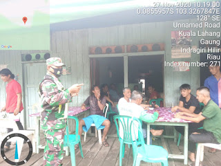 SERIBUPARITNEWS.COM, GAUNG - Serka Tota Simbolon Babinsa Kuala Lahang Koramil 05/Gas Kodim 0314/Inhil dalam penegakkan disiplin hari ini Jumat (27/11/2020)