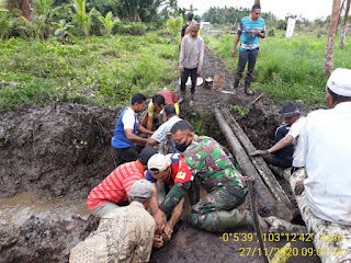 SERIBUPARITNEWS.COM, GAUNG - Serka Sasmito Babinsa Belantaraya Koramil 05/Gas Kodim 0314/Inhil Melaksanakan goro pembersihan paret As dan pembuatan kolong air di lokasi pembangunan ponpes wira usaha insan kauniya desa belantaraya Kecamatan Gaung Kab. Inhil Jumat (27/11/2020)