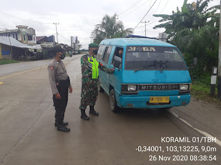 SERIBUPARITNEWS.COM, TEMBILAHANHULU - Serda Suherman Babinsa Koramil 01/Tembilahan Kodim 0314/Inhil giat Posko Terpadu Penegakan Disiplin di simpang 3 pos parit 6 Kamis 26 Nov 2020 Pukul 07:00 Wib s.d. 11:00 Wib.