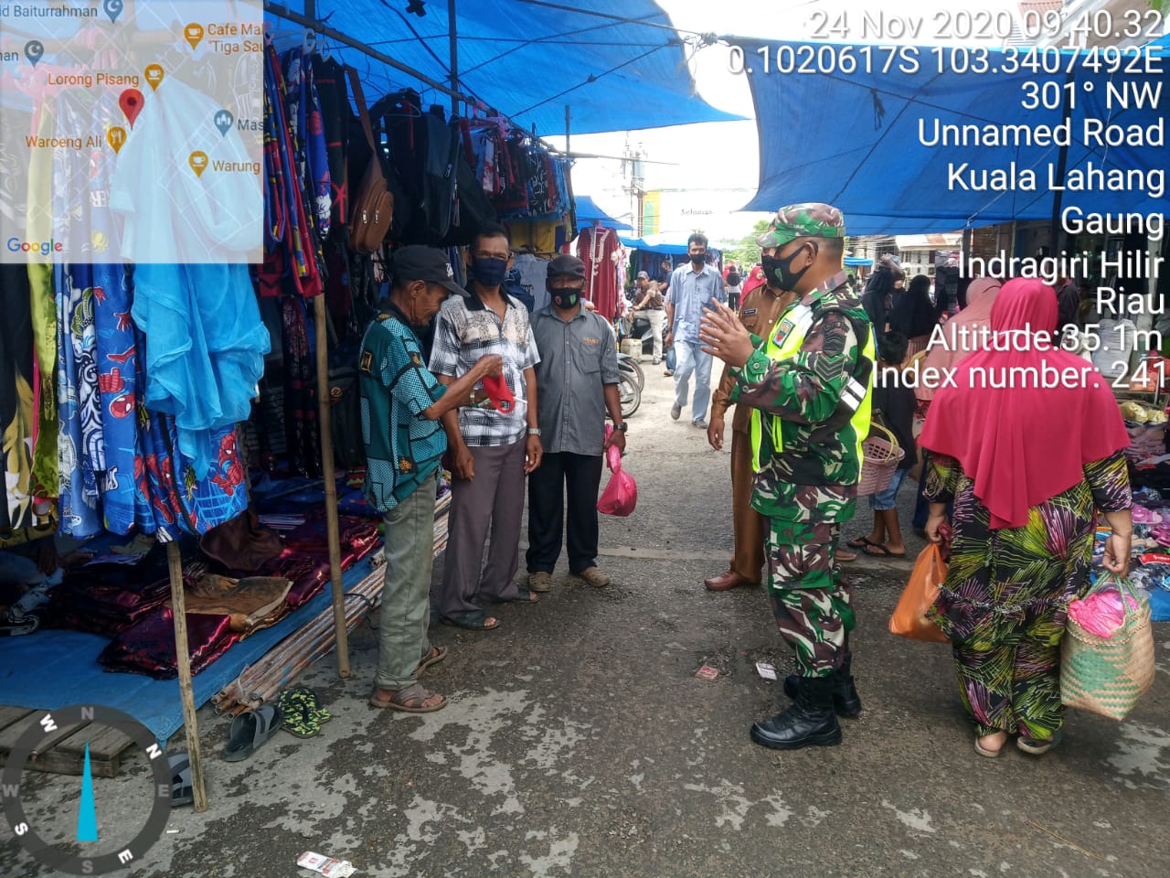 Lokasi Pasar Sasaran Penegakkan Disiplin Protokol Kesehatan Serka Tota Simbolon Babinsa Koramil 05/Gas Kodim 0314/Inhil