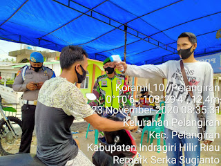 SERIBUPARITNEWS.COM,PELANGIRAN - Pengamanan di Posko Portokes Kecamatan Pelangiran setiap Hari di lakukan personil Koramil 10/Pelangiran Kodim 0314/Inhil  dan Polsek Pelangiran Senin (23/11/2020)
