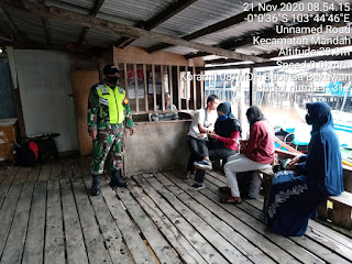SERIBUPARITNEWS.COM,MANDAH  Babinsa  Bekawan Koramil 08/mandah Serda Haris Moni  melaksanakan sosialisasi Gakplin Protokes Covid -19 di pelabuhan  Boad turun naik penumpang Desa Bekawan Kecamatan Mandah Sabtu (21/11/2020)