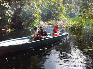 Dengan dibantu Security PT.MSK sertu Sugeng menyusuri sungai dengan sped boat lakukan patroli Karlahut