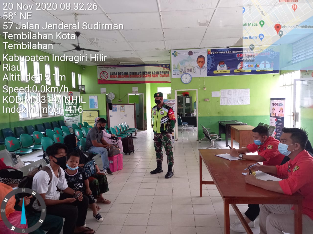 Sertu Syafriadi Koto Babinsa Koramil 01/Tembilahan Kodim 0314/Inhil dalam penegakkan disiplin Protokes di pelabuhan pelindo