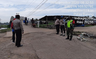 SERIBUPARITNEWS.COM, PULAUBURUNG - sertu Yanursyah dan Serda Ratno dibantu oleh 4 anggota Polsek Pulau Burung dilaksanakan kegiatan Penegakkan disiplin  protokol Kesehatan Dalam Rangka Pencegahan Covid -19 di Wilayah Koramil 11/Pulau Burung Jumat (20/11/2020)