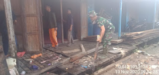 SERIBUPARITNEWS.COM,PELANGIRAN -; Babinsa 10/Pelangiran Kodim 0314/Inhil, Serda Dodi Eka Putra,melaksanakan Gotong Royong bersama masyarakat binaan membantu Merobohkan Rumah warga yg sudah tidak layak huni di RT 02 Desa Lubuk Kempas Kecamatan Pelangiran  Kamis (19/11/2020)