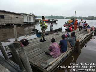 Serda Erik Arianto Sibarani Babinsa Koramil 08/Mandah kodim 0314/Inhil dalam penegakkan disiplin di pelabuhan pasar sendawa
